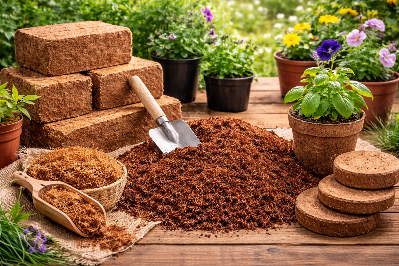 Washed & buffered cocopeat, coir pith, grow bags.